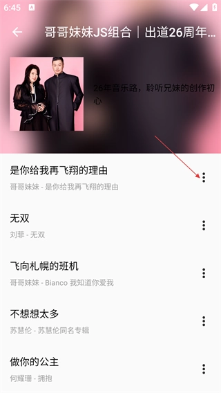 2、在歌单详情页,点击目标歌曲右侧的三点按钮,打开操作菜单。