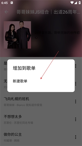 4、在“增加到歌单”的弹窗里,你可以选择已有的歌单,也能点击【新建歌单】按钮,以此完成把歌曲添加到歌单的操作。