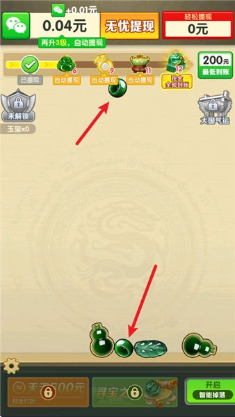 1、基础合成玩法:玩家可通过点击或拖拽操作,把相同的翡翠物件合并,合成后会得到更高级别的物品。