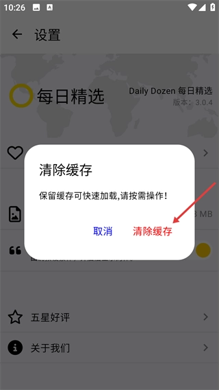 3、弹出提示框,点击【清除缓存】按钮。