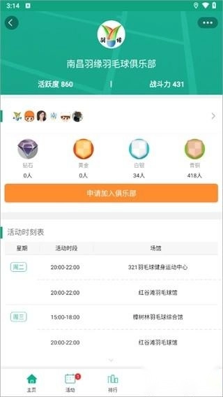 3、点击俱乐部进入详情介绍页面,有着详细的活动时刻表