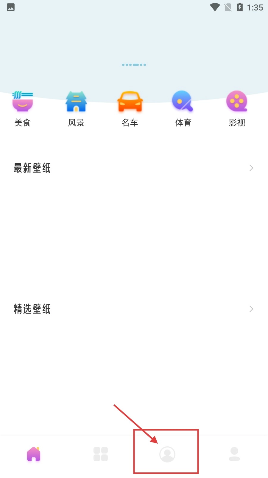 1、打开壁纸类,点击底部的个人中心图标,进入个人页面。