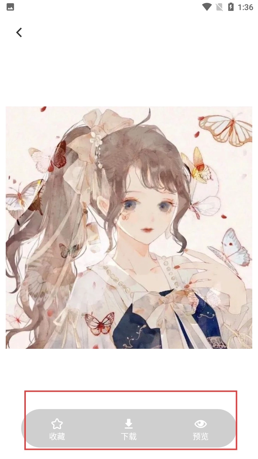 4、在壁纸详情页,可点击【收藏】【】或【预览】按钮,对壁纸进行相应操作。