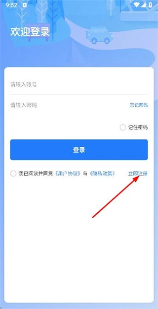 1、在登录页面点击立即注册选项,进入注册账号页面。