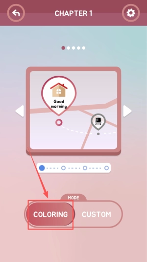 2、选择章节:在章节界面中,点击CHAPTER1,选择COLORING模式进入自定义涂色。