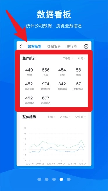 4、在数据看板中查看公司业务统计与趋势数据,掌握整体运营状况与业务走向。