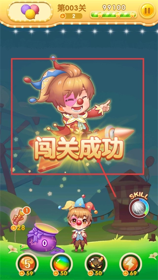 4、当达成泡泡消除的目标后,会出现【闯关成功】的提示,这意味着你已完成本次【第003关】的挑战,并且可以继续向后续关卡推进。