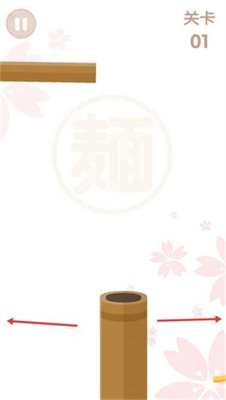 2. 玩家扮演一名手持竹筒的厨师学徒,目标是通过精准的移动接住所有滑下的面条以避免食物浪费。