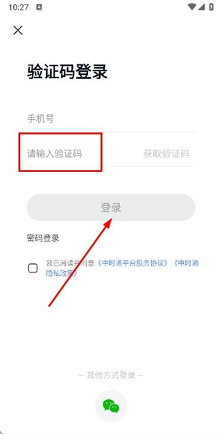 2、在登录页面填写手机号,勾选协议后,点击获取验证码。