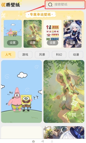2、在搜索框输入壁纸关键词,搜索壁纸。