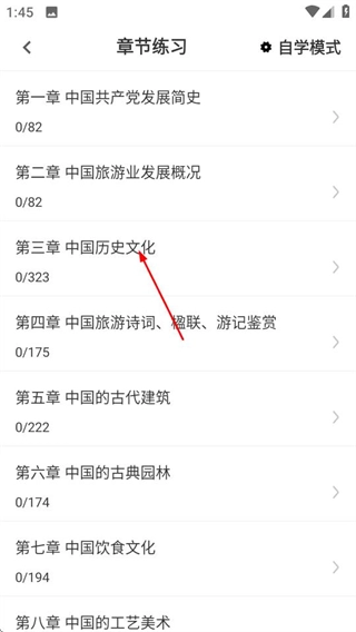 2、在章节练习页面,点击目标章节,进入题型选择页面。
