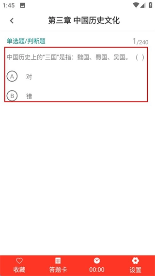 4、进入作答页面后,就可以开始解答该章节的单选题,进行相关练习了。