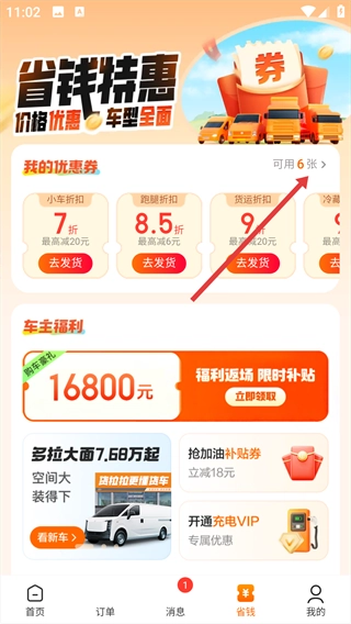 4.优惠福利:各种活动不断,奖励丰富,还能赚取用车券,节省运输成本。
