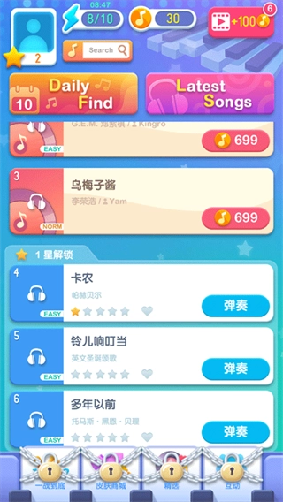3、根据玩家的演奏历史来个性化推荐曲目,你弹得越多,系统就越能精准把握你的音乐喜好。