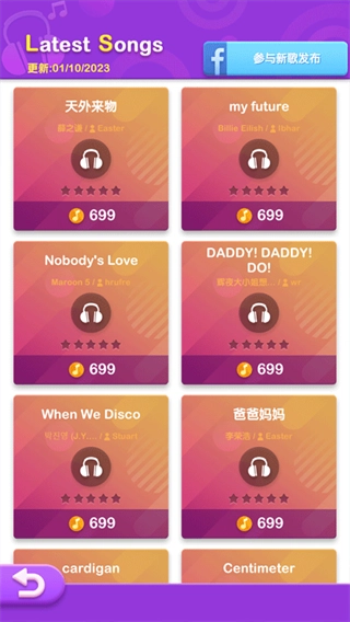 4、游戏里每天都会上线不少新歌曲,不过得消耗小影的音乐币才能进行演奏。