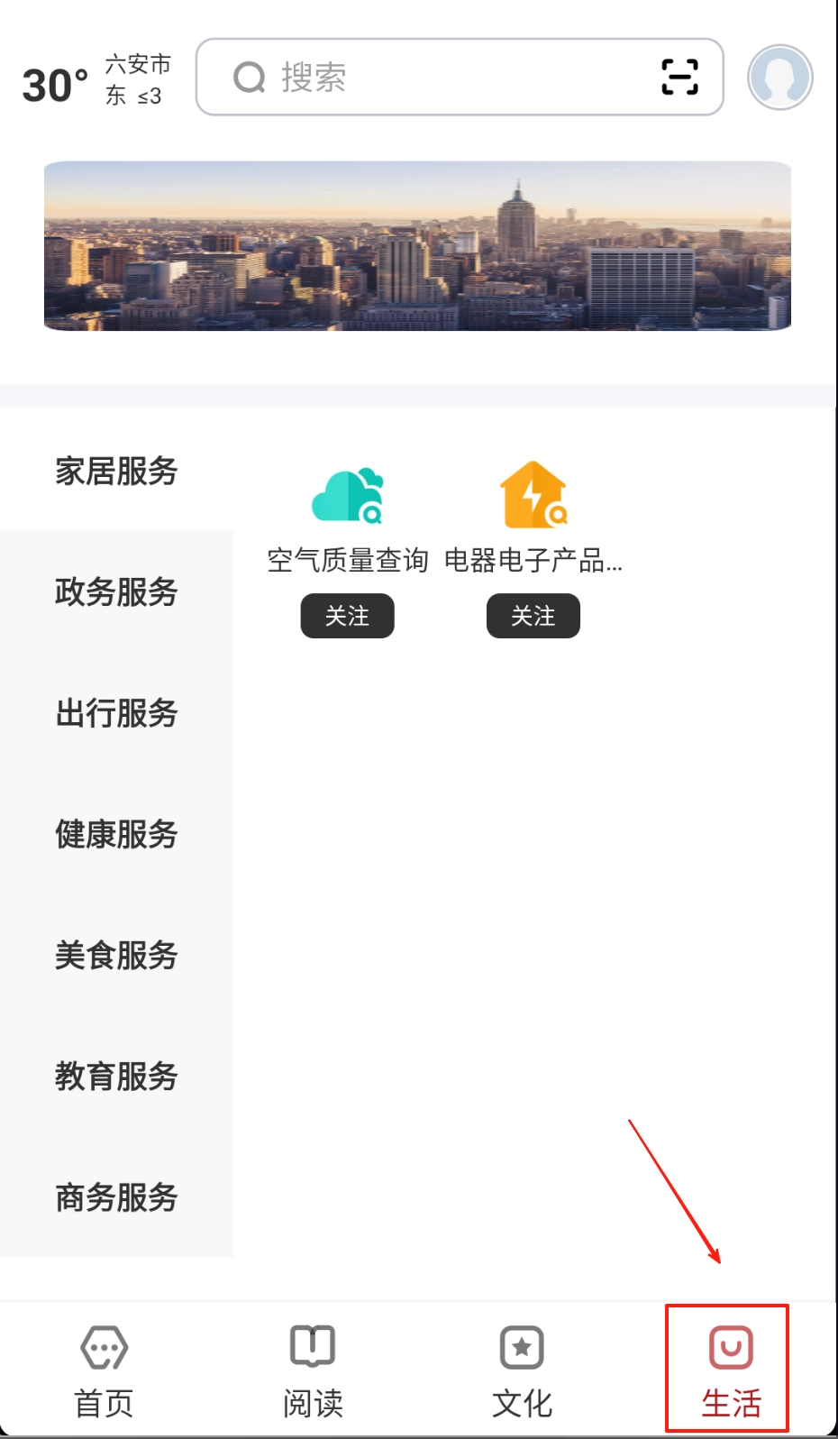 3、进入生活服务界面选择所需业务类型,通过筛选条件快速定位商家并完成在线预约。