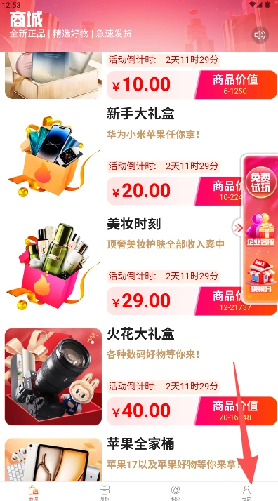 1、推出覆盖多档价位、奖品价值各异的礼盒商品,用户可直接购买并在线完成开盒操作。