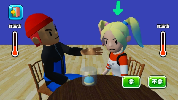 1、玩家可以选择拿或者不拿,要注意对手的动作,利用假动作来欺骗对手,成功获得打耳光机会。