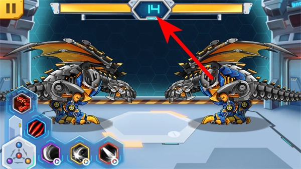 3、在机甲对战界面,观察上方进度条,点击左侧技能图标释放招式。
