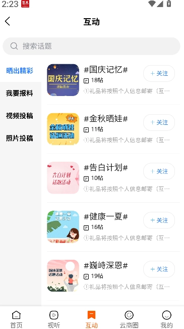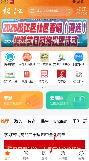 1、进入互动板块,浏览互动页面的各类内容入口。