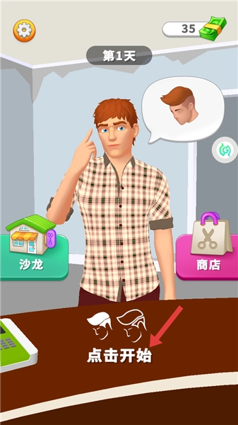 1、在主界面点击“点击开始”按钮,即可进入为顾客理发的操作场景。