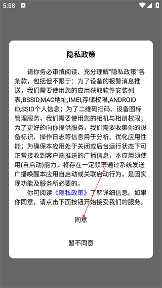 1、第一次打开应用时,先阅读《隐私政策》,之后点击【同意】按钮,即可完成隐私条款的确认。