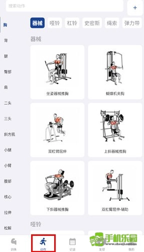 回到首页后,点击“动作”选项,你就能看到各类健身动作的模型。这些动作依据锻炼部位做了细致分类,能让你更便捷地查找和学习。