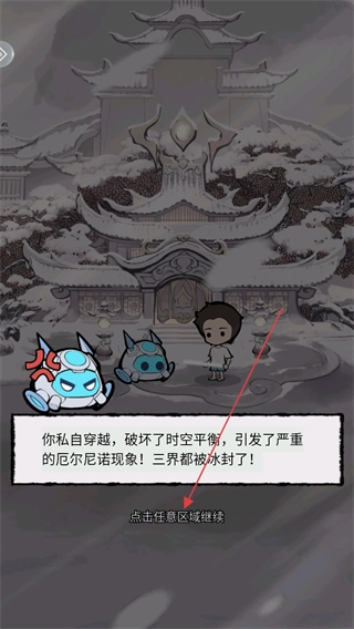 2、进入游戏剧情对话页,显示相关剧情文本,点击任意区域继续播放对话,即可推进剧情至下一个环节。