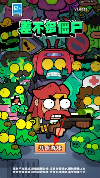 1、点击开始游戏按钮,这是进入生存挑战的关键操作,点击后可进入僵尸围堵的场景,正式开启抵御僵尸的生存进程。