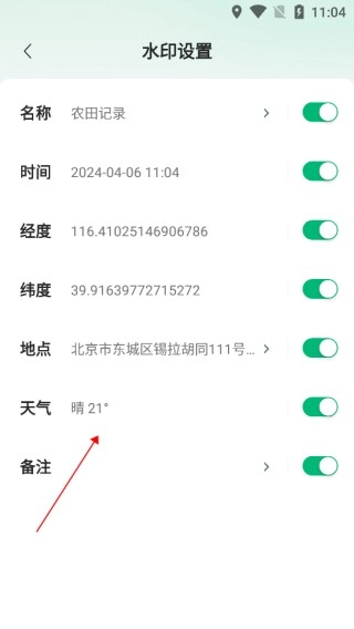 3、可选择需要的要素运用,名称、时间、经度、纬度、地点、天气或是添加备注