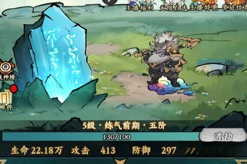 进入游戏主界面后,能看到玩家选定的角色以及一块可供修炼的石头,点击界面下方的按钮即可启动修炼流程。在修炼过程中,玩家每对石头发起一次攻击,都有机会获取装备道具或各类资源。