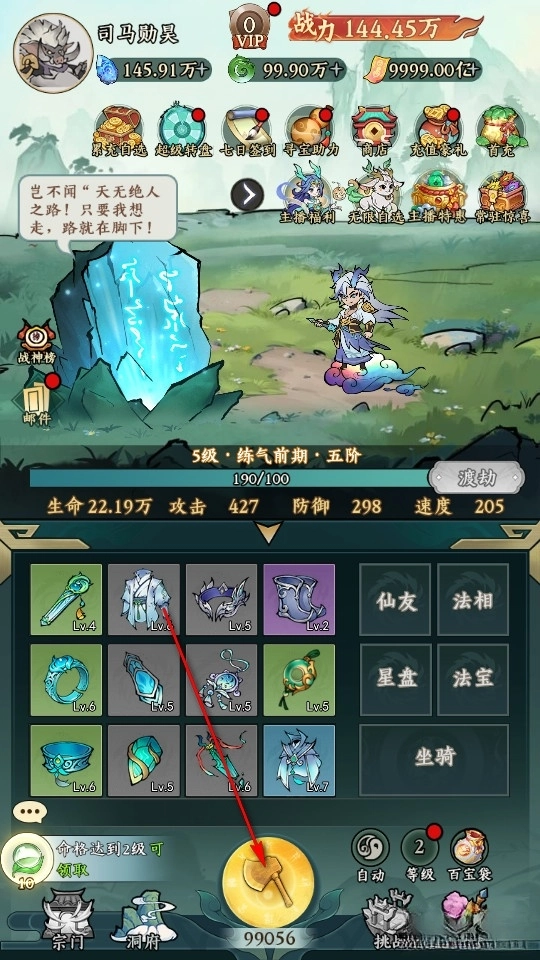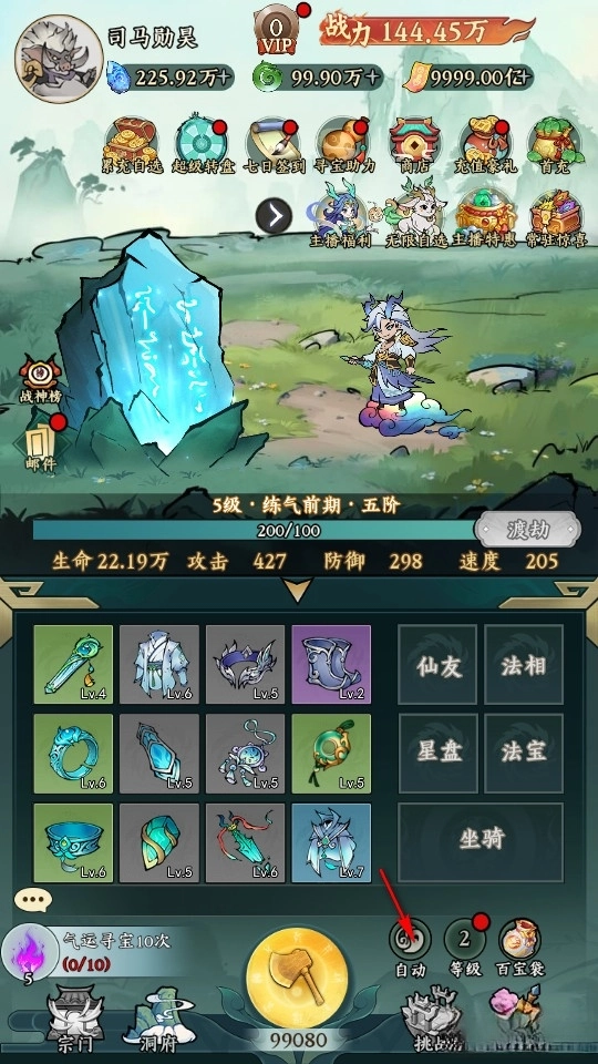 只需点击右侧的自动按键,我们就能开启全自动修仙模式。