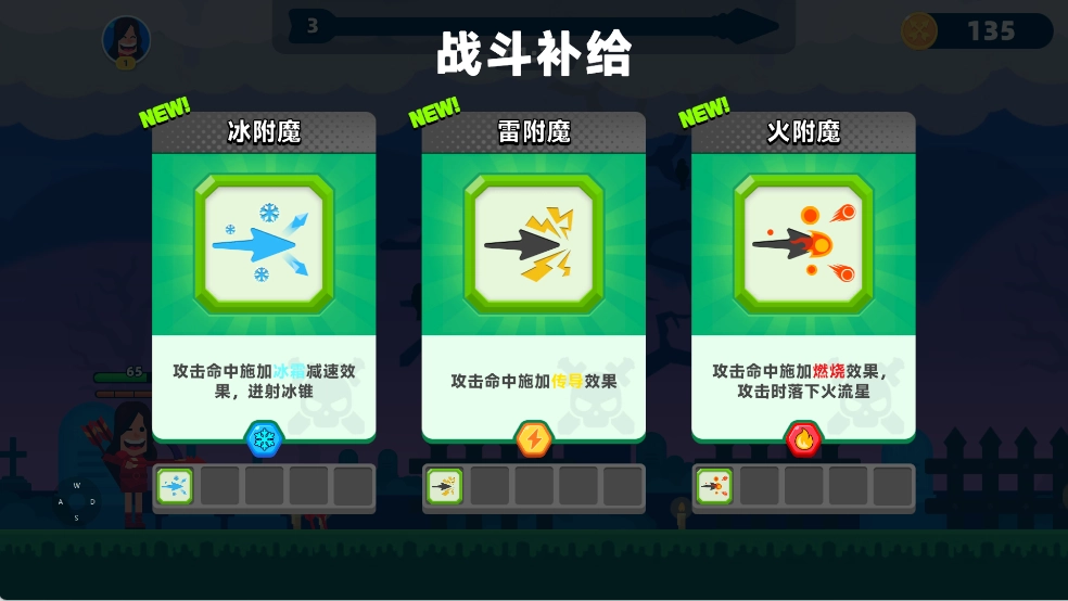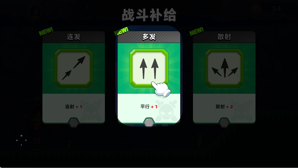 2.每升一级都可以在游戏中选择相对应的技能,当敌人较多时可以快速清屏。