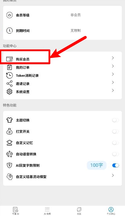 1、启动软件后,进入个人中心并点击“购买会员”选项。