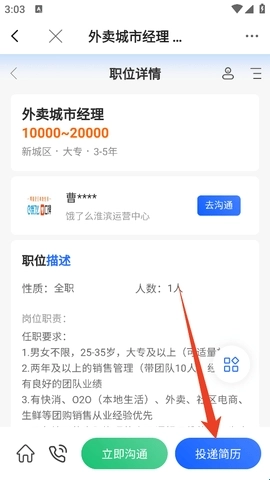 3、找到匹配自己的岗位后,点击进入详情页,就能进行简历投递操作了。