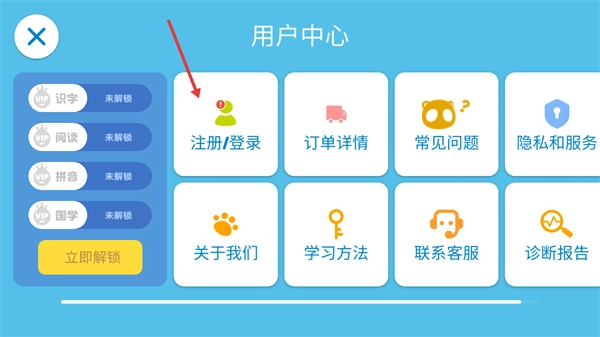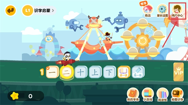 1、在识字启蒙主界面,点击右上角的【用户中心】按钮。