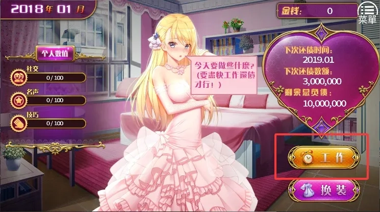 想了解《负债千金》的玩法攻略吗?这款游戏巧妙结合了小游戏与模拟经营元素,能让你开启一段别具一格的还债体验。操作十分简便,只需点击接受任务即可,完成任务后会有等待时间。游戏场景丰富多样,校园、街头等不同场景依次展开。服饰系统也很完善,数十套风格各异的服装可供你根据每日任务需求进行搭配。人物立绘制作精良,整体画面质感出色。你将以女主的视角,沉浸在精彩的剧情中,邂逅各种有趣的事件。游戏内设有多种模式,支持自由探索,还包含丰富的对话选项和分支剧情。首次启动时选择简体中文,进入主菜单后点击“开始新游戏”,在城市地图上找到工作场所的图标,挑选合适的岗位就能开始赚钱。面对高额欠款,你需要帮助女主努力奋斗,选择合适的工作来赚取收入,还能解锁更多道具以提高收益。快来加入这场浪漫又刺激的还债冒险吧!