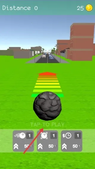 1、点击界面中间的【TAPTOPLAY】区域,即可启动石球并开始游戏。