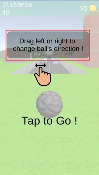 2、通过左右拖动来调整石球的方向,点击【TaptoGo!】按钮即可让石球向前移动。
