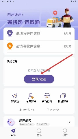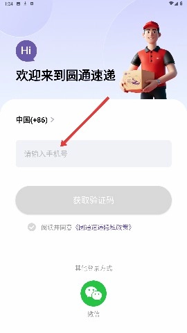 1、进入圆通速递页面后,点击登录/注册按钮即可进入登录界面,在此可选择手机号验证码登录、微信登录等多种方式。