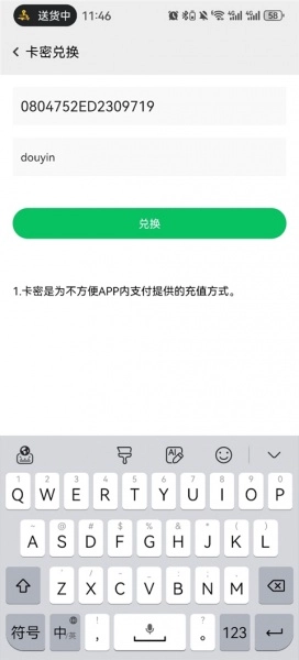 3、绑定抖音后会跳转到这个小程序里面,点击卡密;