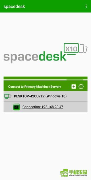 2、在电脑上安装好spacedesk软件后,在同一局域网内,软件内会自动搜索到此电脑,如果没有搜索到,也可以点击中间的加号,进行添加,ip地址为电脑软件中显示的ip;