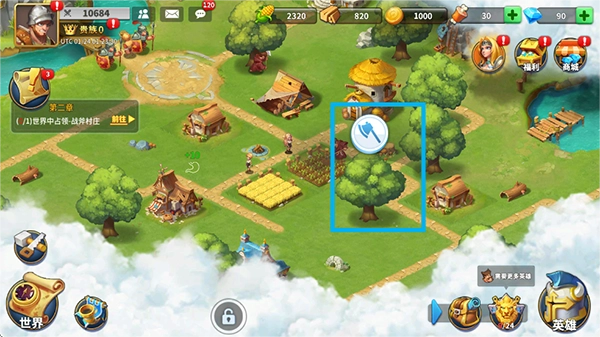 领地内的树木支持点击砍伐,有树木的区域无法建造建筑,建议抽空安排英雄去砍伐树木,收集资源的方式都不要错过。