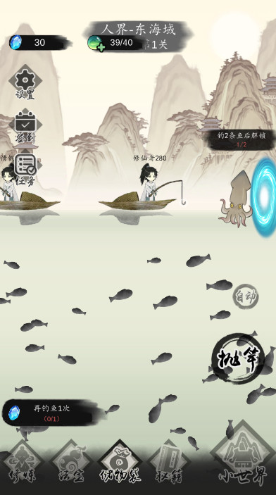《钓鱼修仙》是一款玩法休闲且带有水墨画风格的游戏,核心玩法围绕钓鱼展开,故事背景设定在修仙世界。玩家在游戏里通过钓鱼收获各类奖励,以此解锁修仙秘籍,一步步增强自身实力,最终达成成仙的目标。该游戏操作简单易上手,画面精致优美,同时拥有多样有趣的玩法,能让玩家在游玩过程中舒缓身心、放松心情。