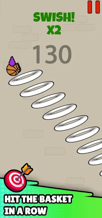 1. 特色玩法:以篮球为核心主题,玩家通过点击操作使篮球腾空跃入篮筐获取分数,篮球连续穿筐时会触发炫酷特效,打破纪录同样有专属特效呈现,为玩家带来充满刺激感的游戏体验。