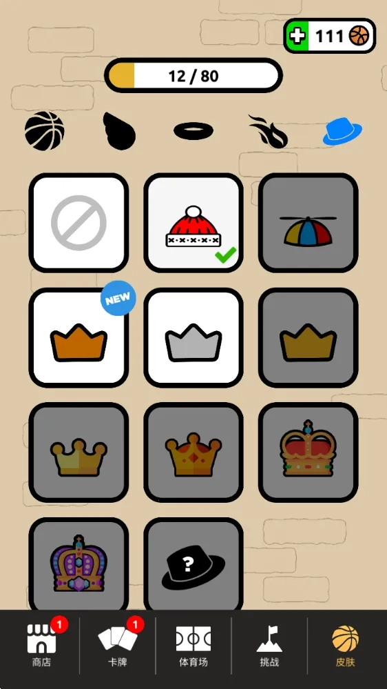 3、除篮球皮肤外,还能更换帽子、翅膀、篮筐之类的物品。