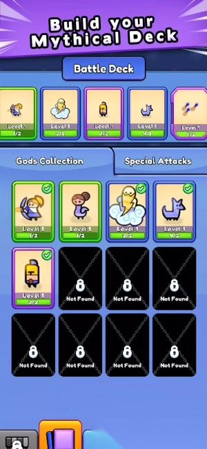 3.提供深度的养成与自定义系统,神祇可通过升级、进化解锁新形态与技能,卡组亦可随战局环境与个人策略进行灵活调整与构筑优化。