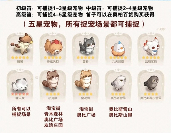1、初级笛:可捕捉1-3星级宠物(2000金币每天限买20个)