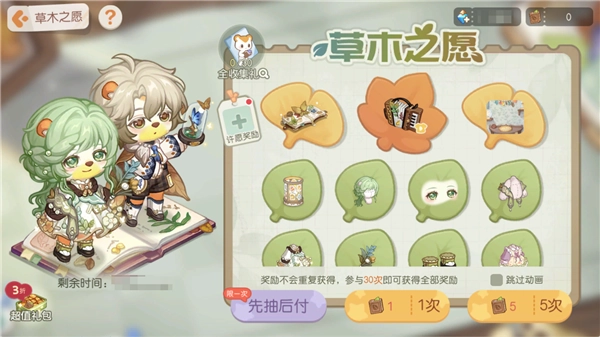 活动介绍:草木虽静默无言,却蕴含着温暖的力量。当你静下心来聆听它们的故事,它们也会回应你的期许,为你捎来美好的祝福。参与「草木之愿」限时活动,就能收获一系列活动专属奖励,其中涵盖「秋蕨映象」「枯叶蝶记」主题装扮系列,还有「标本室制造桌」「标本室标本架」等限定家具部件,以及特殊装扮「植物之灵手风琴」、双人座椅「叶语扉页」、头像框「拾光藏叶」、背景卡「拾叶寄情背景」、双人动作「呼呼落叶飞」,和晨星品质称号「拾一叶秋光」等诸多惊喜好礼!值得一提的是,在本次活动中集齐所有奖励的小奥比,还能额外获得限定装扮「空间开场(花叶)」哦!