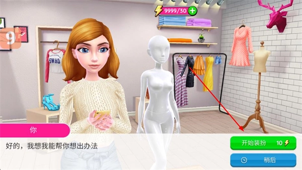 1、进入游戏后,接收客户提出的装扮需求,点击“开始装扮”按钮消耗能量,以此启动搭配流程。